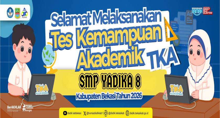 Selamat Melaksanakan Tes Kemampuan Akademik (TKA) bagi seluruh siswa/siswi kelas IX di SMP Yadika 8.